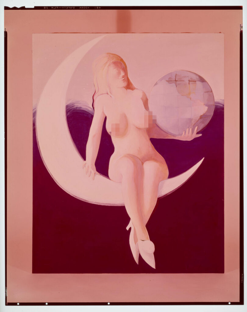 “Seated on her silver crescent/Playmate shines so effervescent/Teeth, smile, breasts, belly/ Knees and coy-crossed calves/Transmitter of titillation/Receiver of adoration/She is the queen of vanity.” So wrote Lanyon for the January, 1967 “The Playmate as Fine Art” feature.